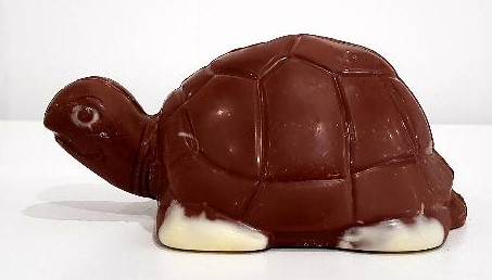 Tortue 90g au chocolat lait ou noir garnie de friture sèche.
