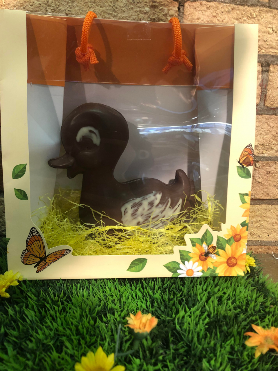 Ne manquez pas cette occasion de vous régaler avec notre canard rigolo en chocolat au lait ou noir, garni de friture lait ou noir. Commandez dès maintenant et profitez d'un moment de plaisir chocolaté !