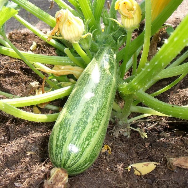 Plant courgette d'Italie Aussi connue sous le nom de "coucourzelle". Très jolie couleur pour cette variété productive et vigoureuse.