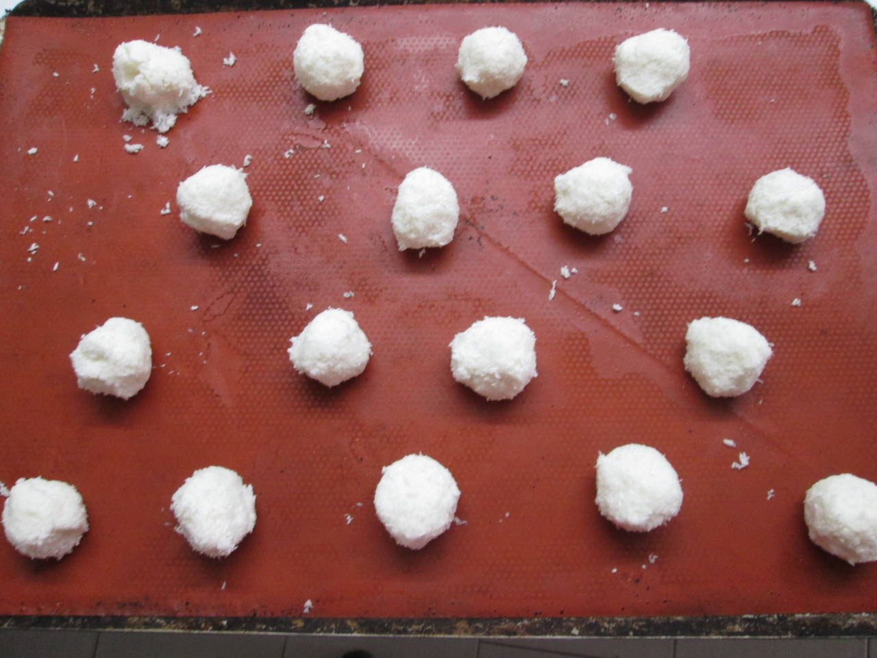 Toujours fidèle à la tradition voici les minis rochers en suivant la recette apprise par mon patron lors de mon apprentissage; Blancs d’œuf, sucre, coco râpé et Rhum.