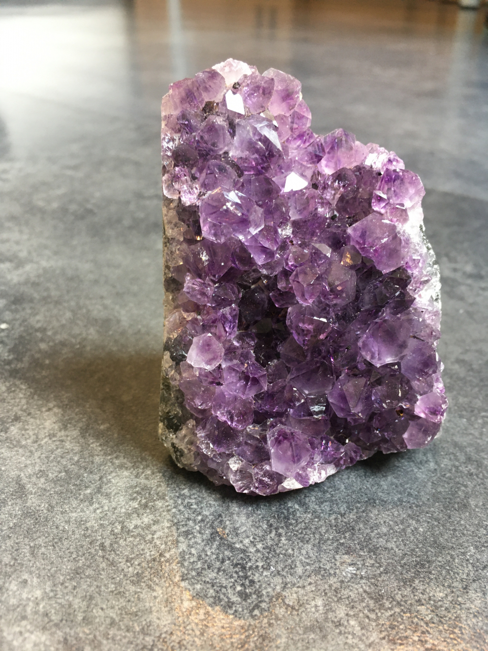 L'améthyste est une pierre de paix, de connexion et de connaissance. Elle ouvre à la spiritualité, favorise un bon sommeil, et recharge vos pierres/bijoux si vous les posez dessus.