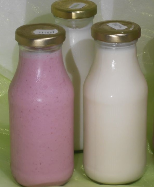 Le yaourt à boire est conditionné en bouteille d'un demi litre en verre que nous récupérons