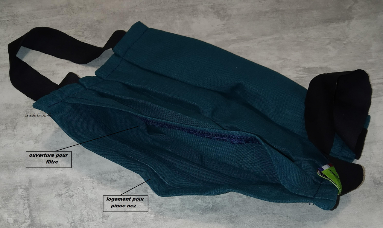 ce masque a deux épaisseur de coton (oeko-tex fabriquer en France ) avec une ouverture à l’arrière pour vous permettre d'y glisser un filtre supplémentaire (facultatif) comme un lingette microfibre ou une feuille de papier absorbant.