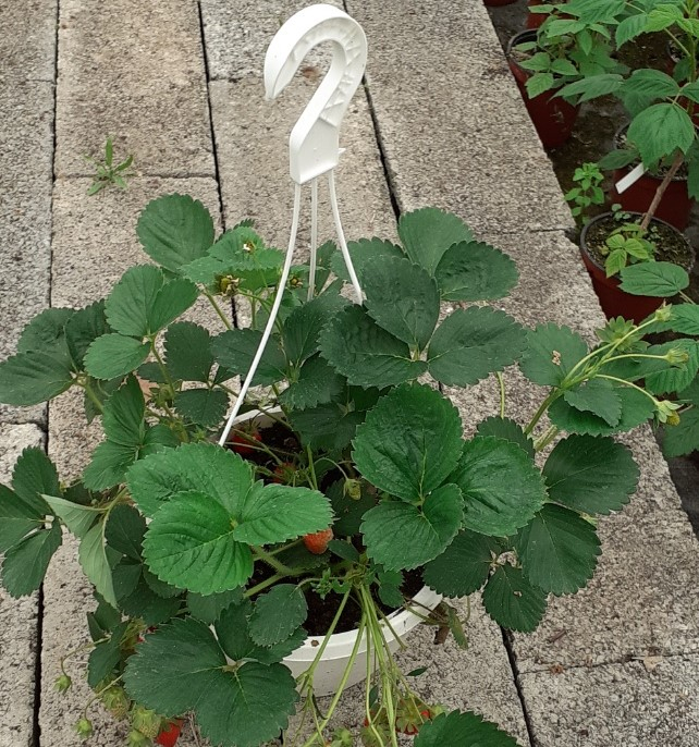 Suspension contenant 2 plants de fraisiers Mara des bois,