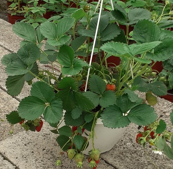 Suspension contenant 3 plants de fraisiers Mariguette,