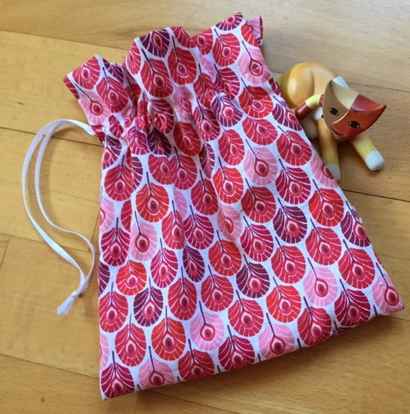 Le tout est en coton Oekotex motif zen rouge d’un côté, 1 partie est doublée de nid d’abeille jaune et le reste en éponge.