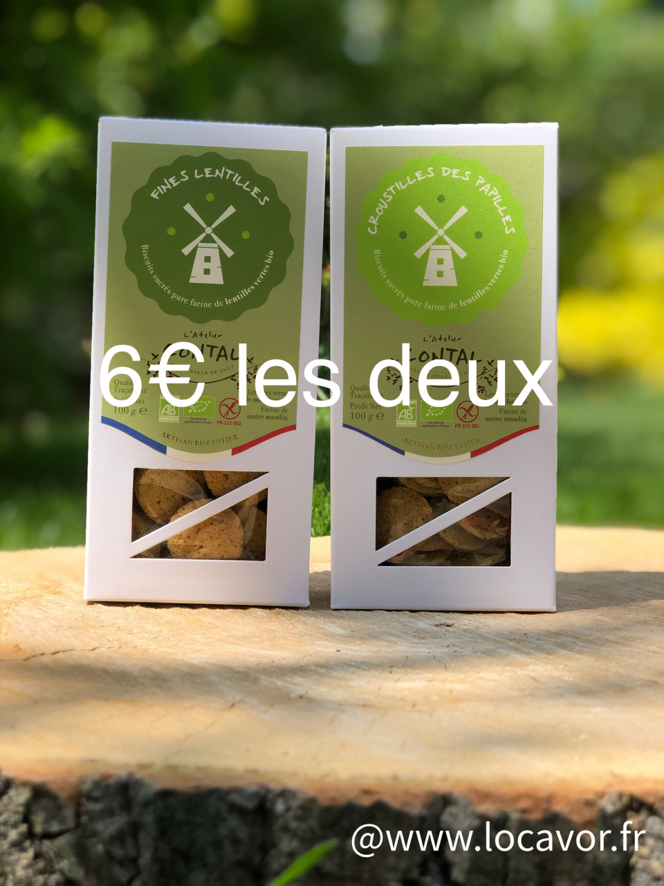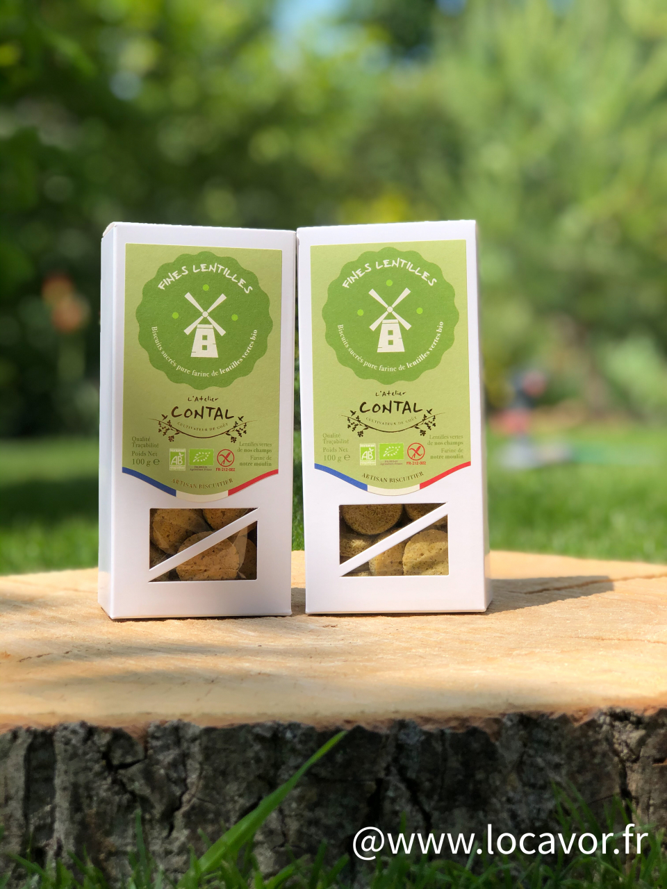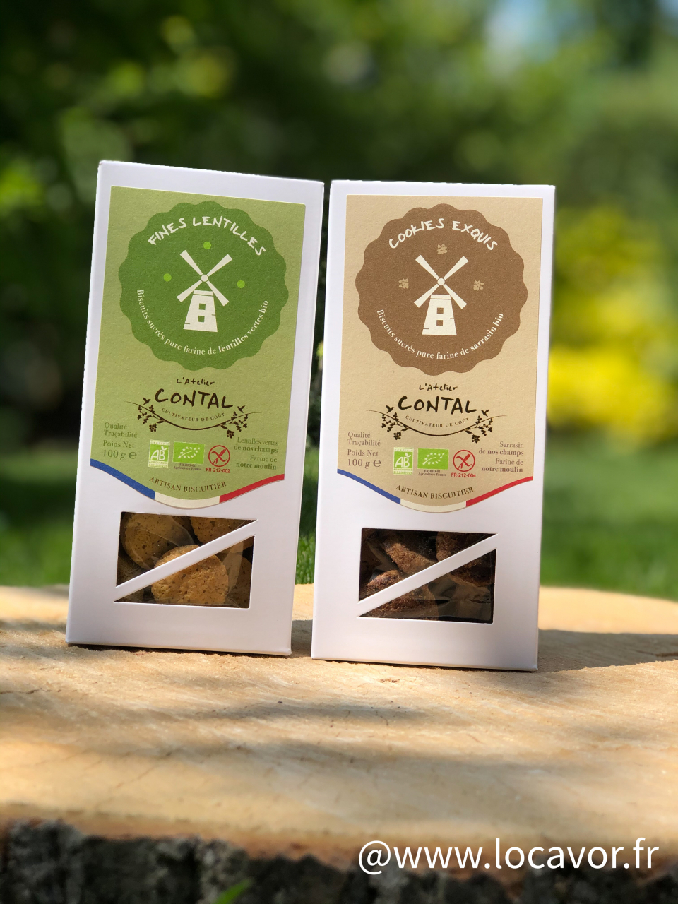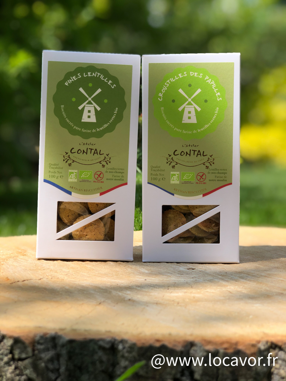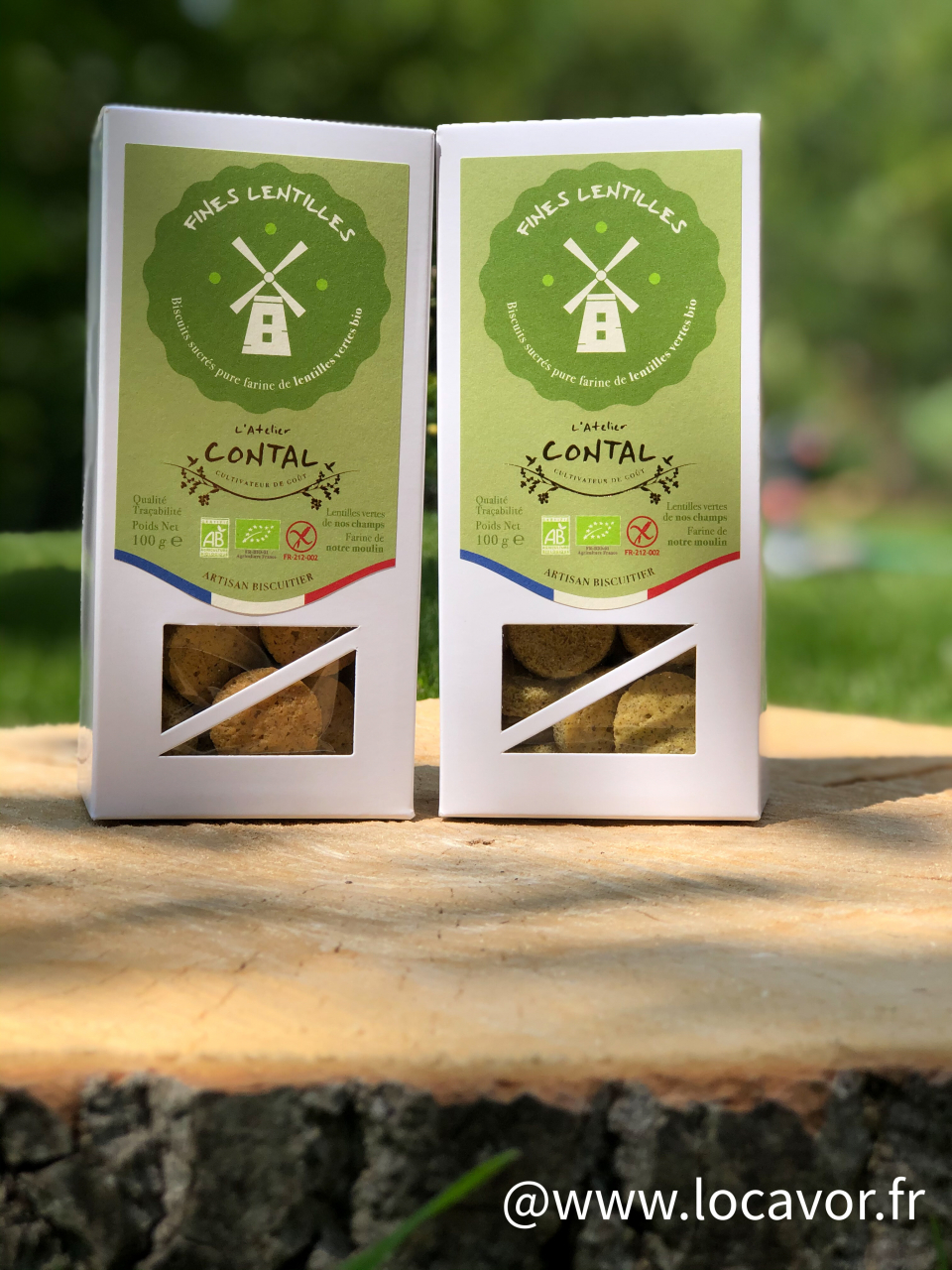 L'Atelier Contal propose 2 boites de biscuits BIO et SANS GLUTEN à la farine de lentilles vertes issue de leur production. Ces biscuits certifiés AFDIAG (Association Française des Intolérants Au Gluten) sont fabriqués dans la biscuiterie artisanale ardennaise des Contal Farmer.