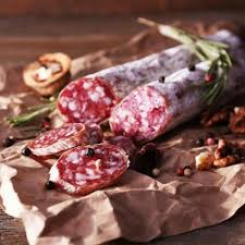 Ingrédients : Viande et gras de bœufassaisonnement complet : (sel LACTOSE dextrose diphosphates triphosphates épice et plantes aromatiques ail antioxydant : (érythorbate de sodium) conservateur : ( nitrate de potassium)) boyaux naturels