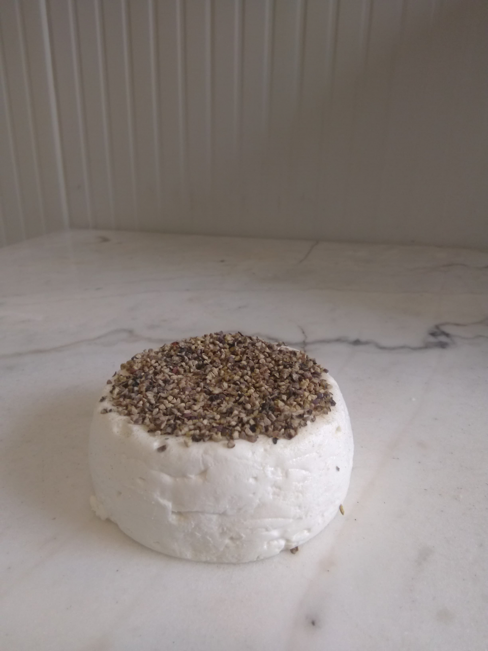 fromage de chèvre frais au lait cru de 180 gr recouvert de poivre (1 litre de lait), lait produit et transformé sur l'exploitation