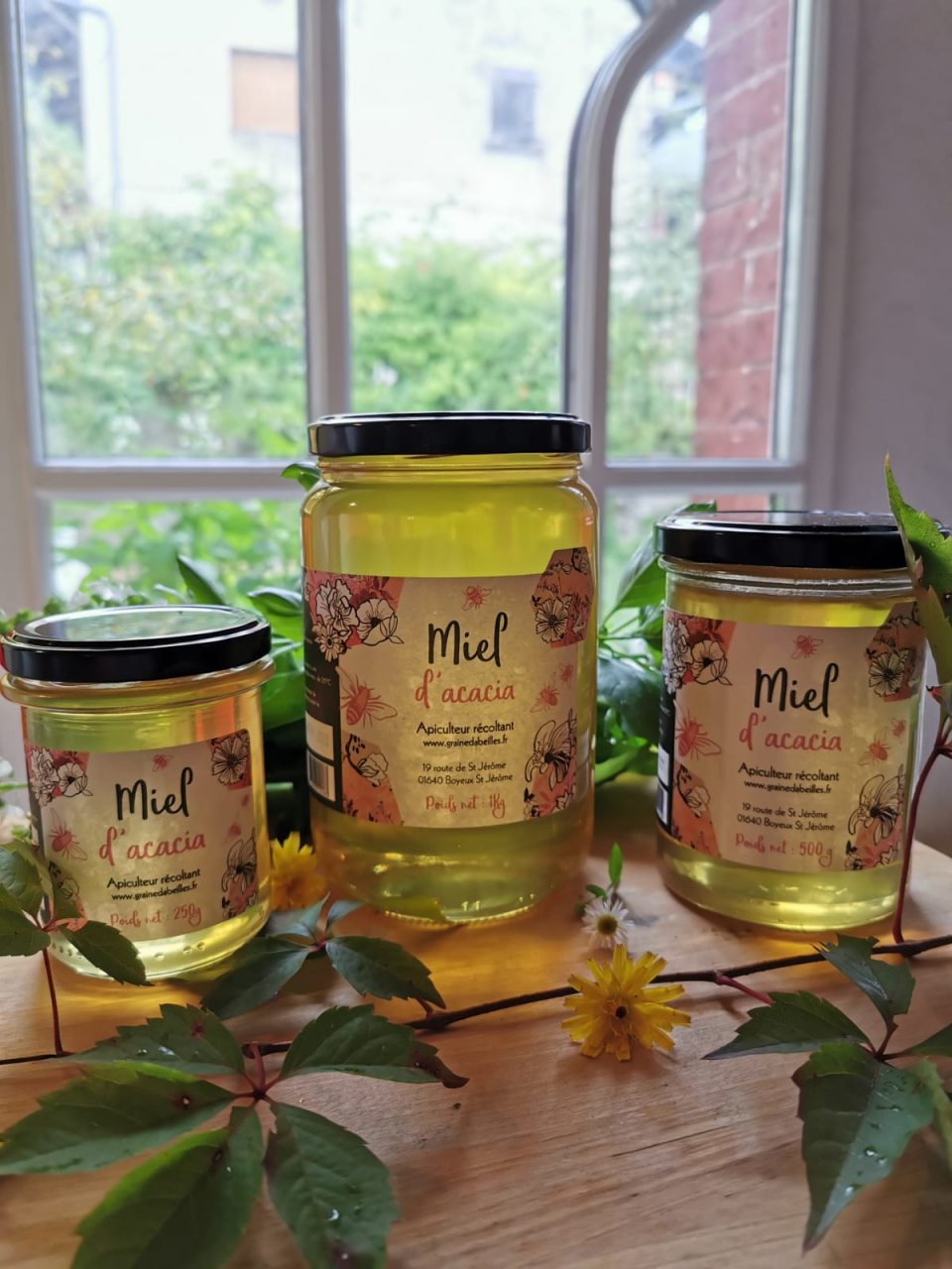 Le miel d’acacia a une robe jaune pâle presque transparente. Il est doux et parfumé et reste liquide très longtemps. Issu principalement du butinage des fleurs d’acacia.