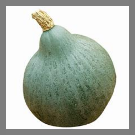 Sa peau est de couleur gris-vert, sur plante coureuse. La chair jaune-orange a un arôme prononcé de marron. Excellente conservation.