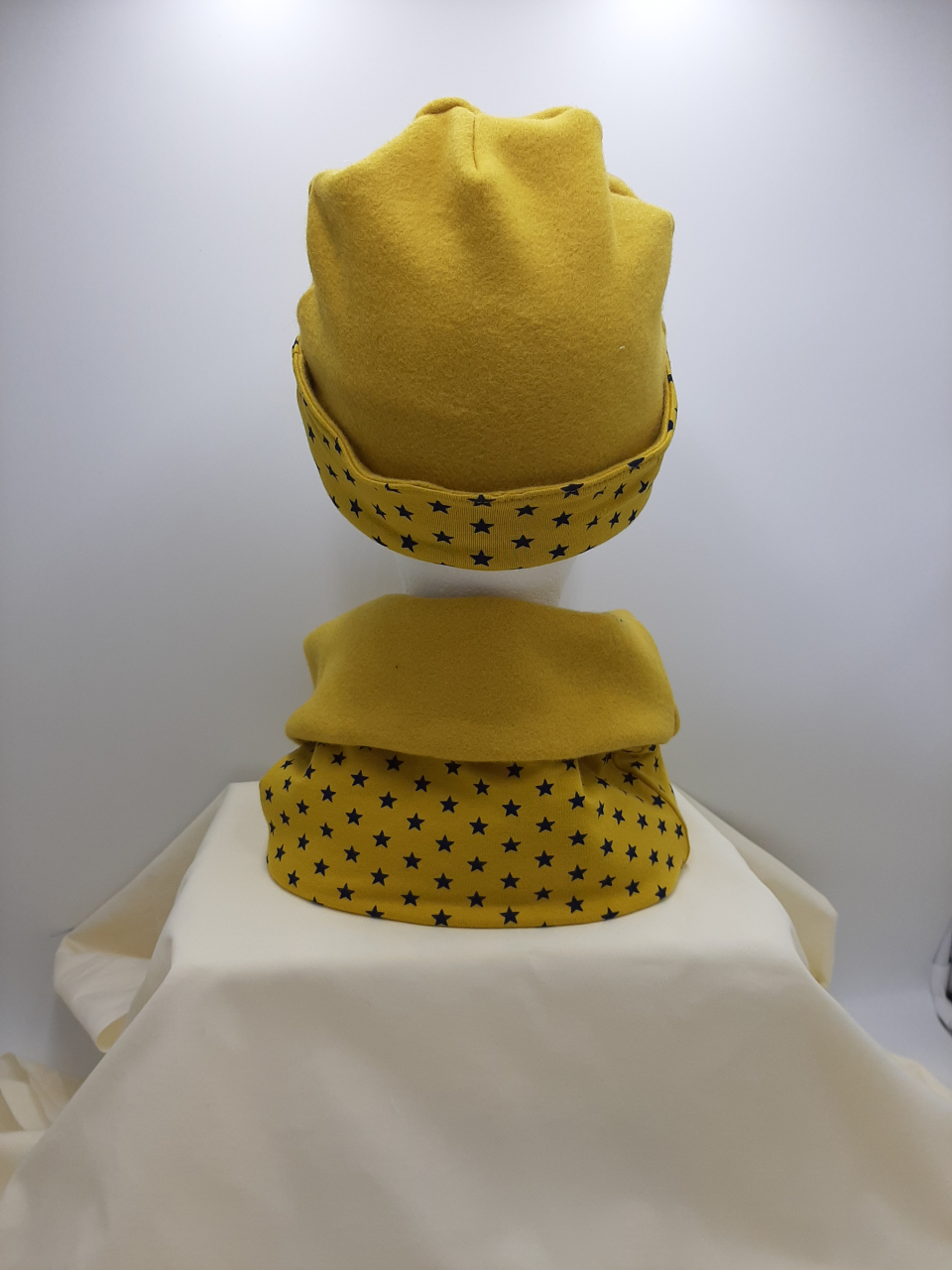Ensemble enfant composé d'un snood et d'un bonnet assorti.