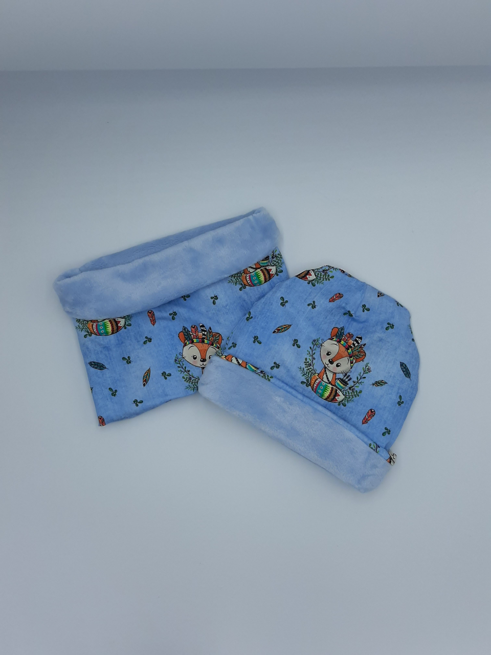 Ensemble enfant composé d'un snood et d'un bonnet assorti.