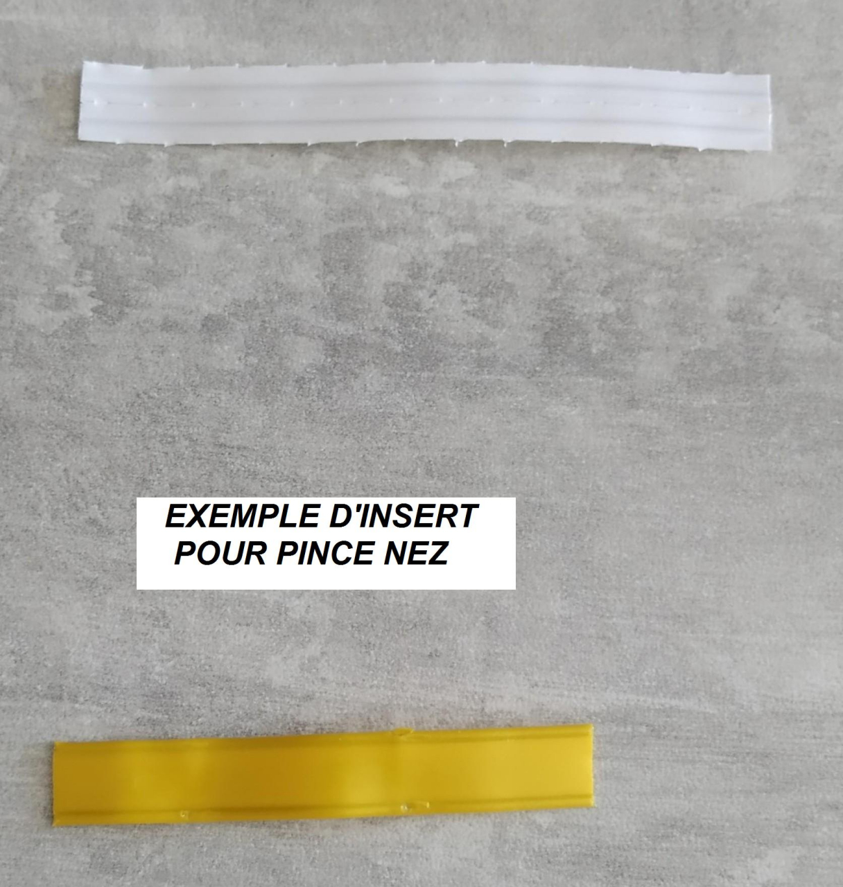 Un petit logement est prévue pour y glisser un insert pour pince nez (petit lien de fermeture que vous trouvez sur vos emballage ou dans les lots de poches congélateur). Insert non fourni et a retirer avant lavage.