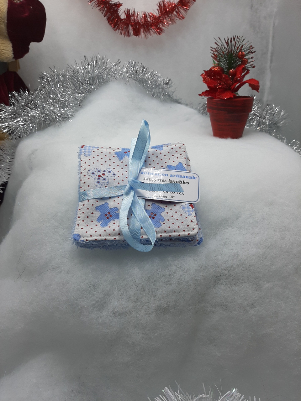 - un lot de 5 lingettes lavables en éponge de coton et coton imprimé.