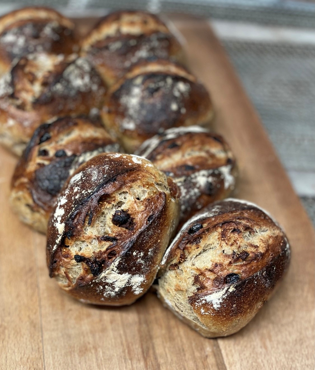 Le banneton de Noël. Composé d’un mélange maison d’épices de pain d’épices, figues, raisins, miel et amandes effilées.