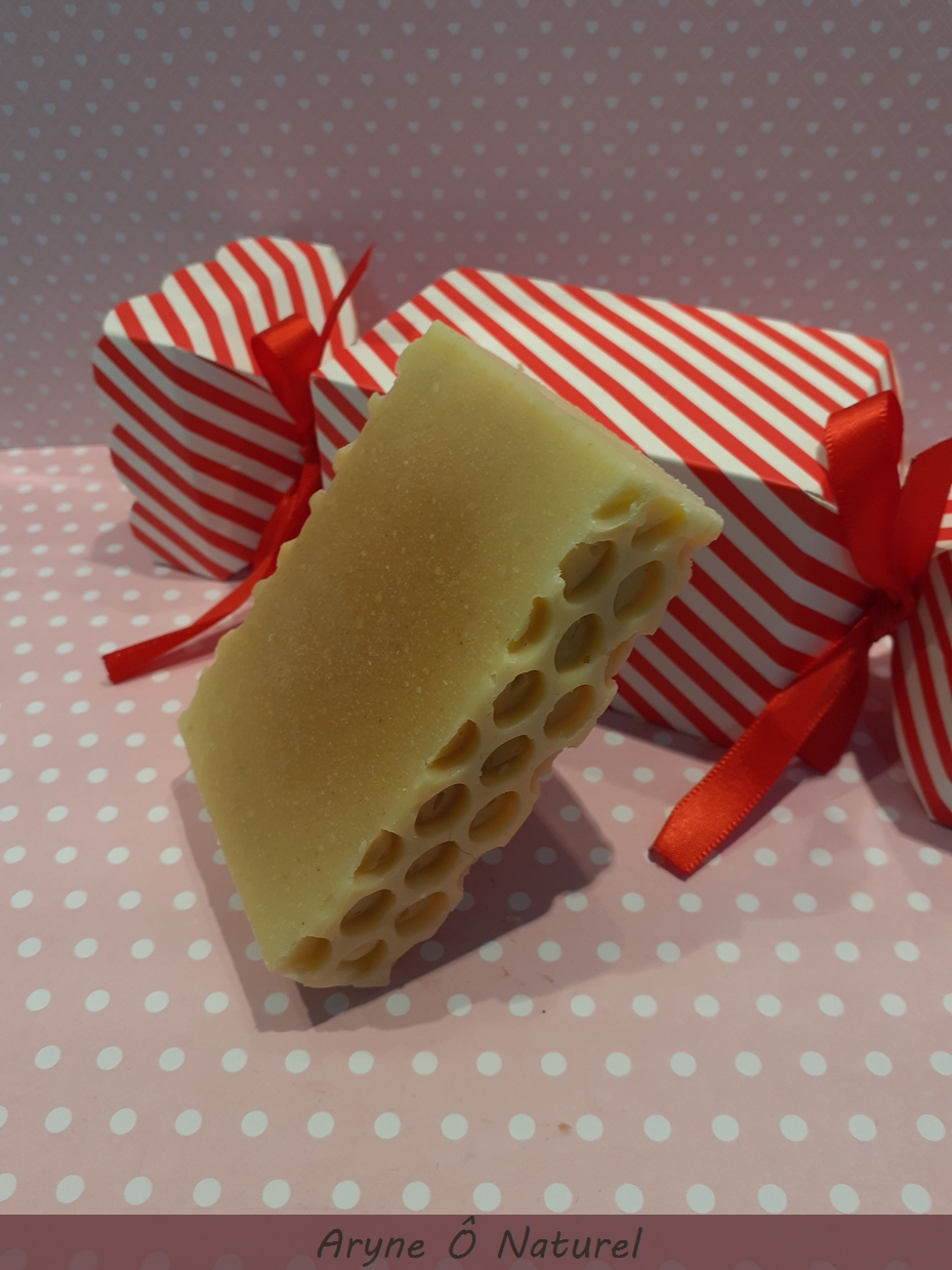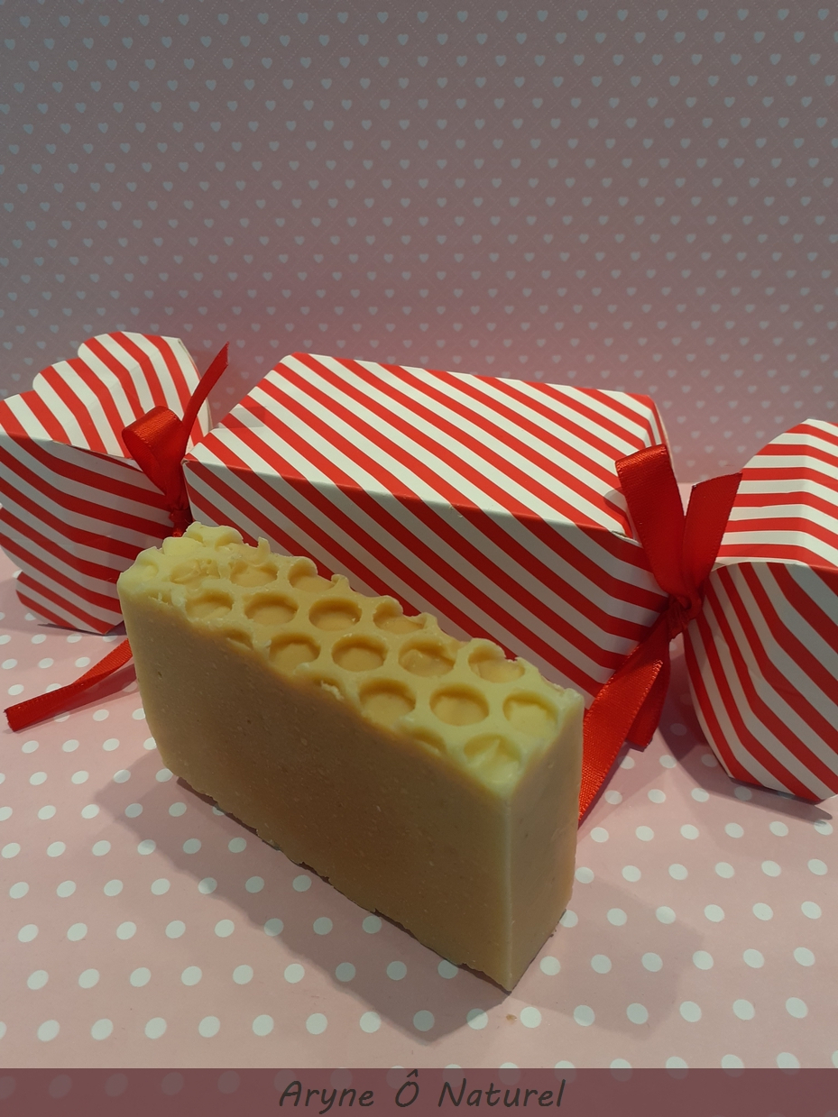 Ingrédients : Sodium Sunflowerseedate, Sodium Cocoate, Sodium Olivate, Sodium Shea Butterate, Aqua, Glycerin, Mel, Butyrospermum Parkii Butter, Sodium Beeswax, Sodium Citrate, Avena Sativa Kernel Flour, Helianthus Annuus Seed Oil, Cocos Nucifera Oil, Ole
