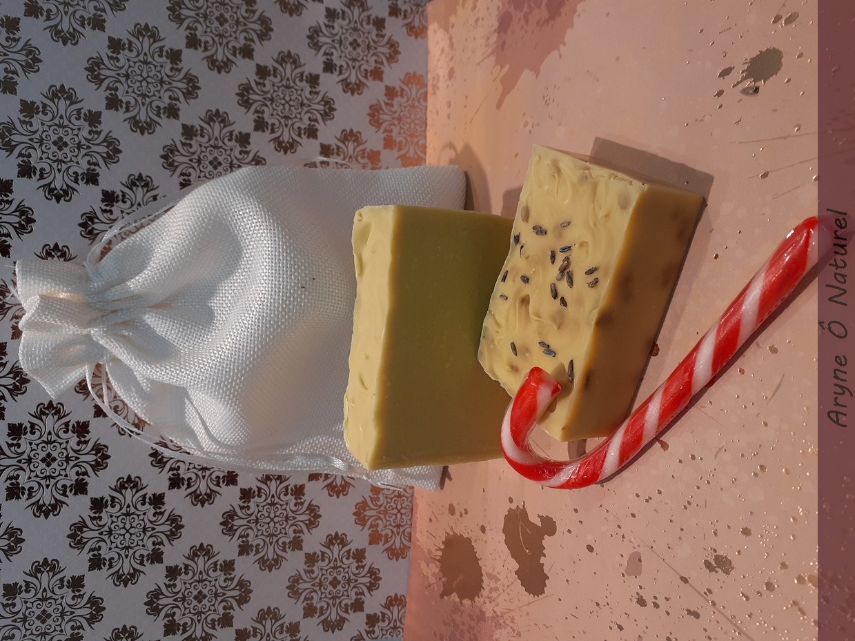 Pochon cadeau 1 savon L'Andalou et 1 savon L'Andalou Lavande dans un pochon en tissu naturel accompagner de son petit sachet de lavande !