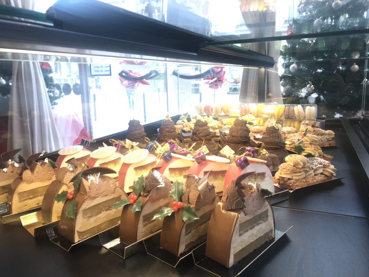 Bûches Exotique, Mousse Mangue, crémeux fruit de la passion, Biscuit madeleine, ananas rôti.
