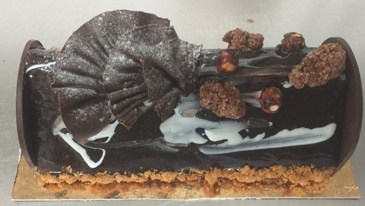 Voici notre bûche tout choco, composée d'une mousse chocolat noir, une mousse chocolat blanc et enfin d'une mousse chocolat au lait et d'un délicieux biscuit chocolat.