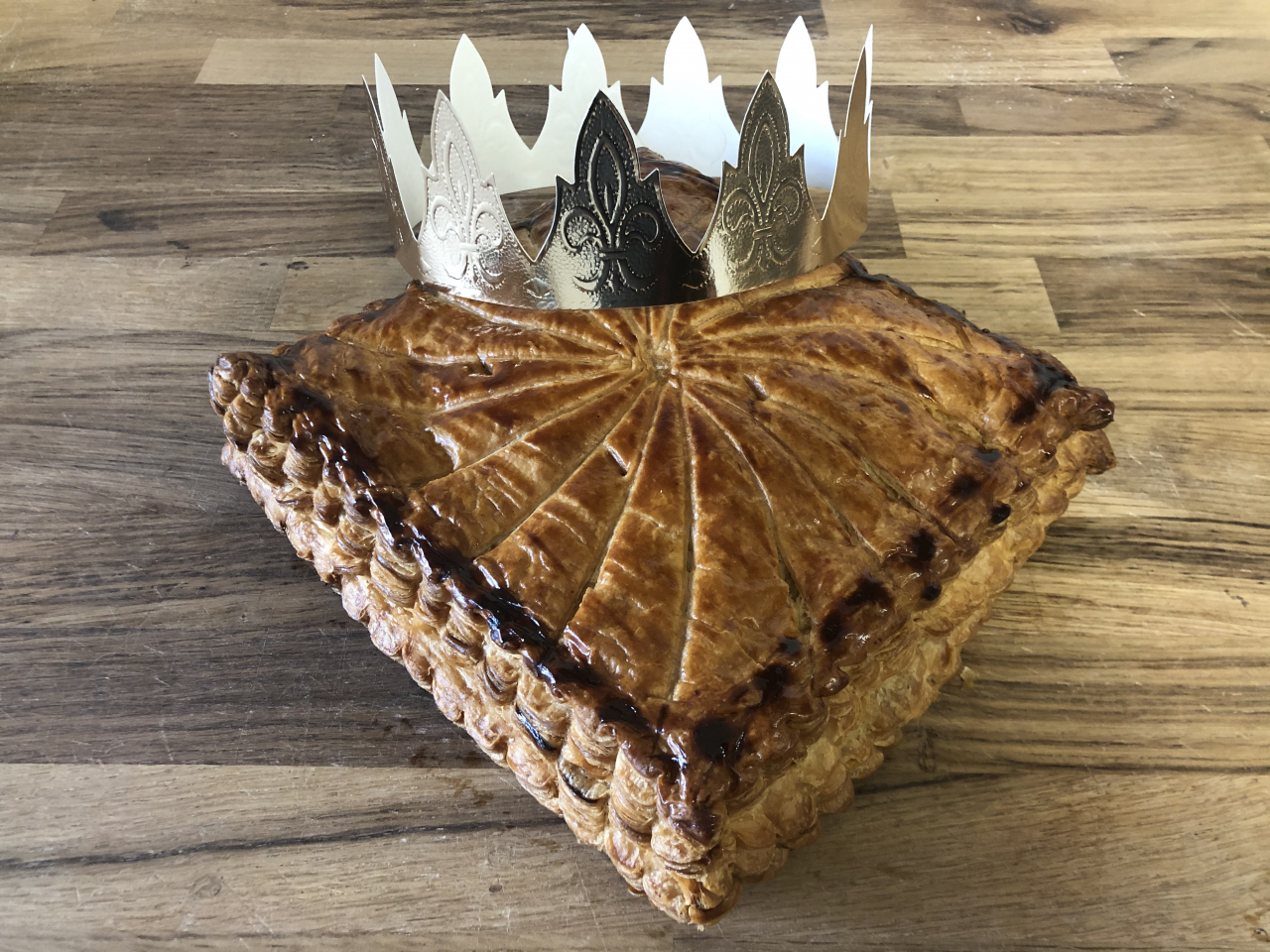 Galette maison : pâte feuilletée, compote de pommes maison avec fève et couronne