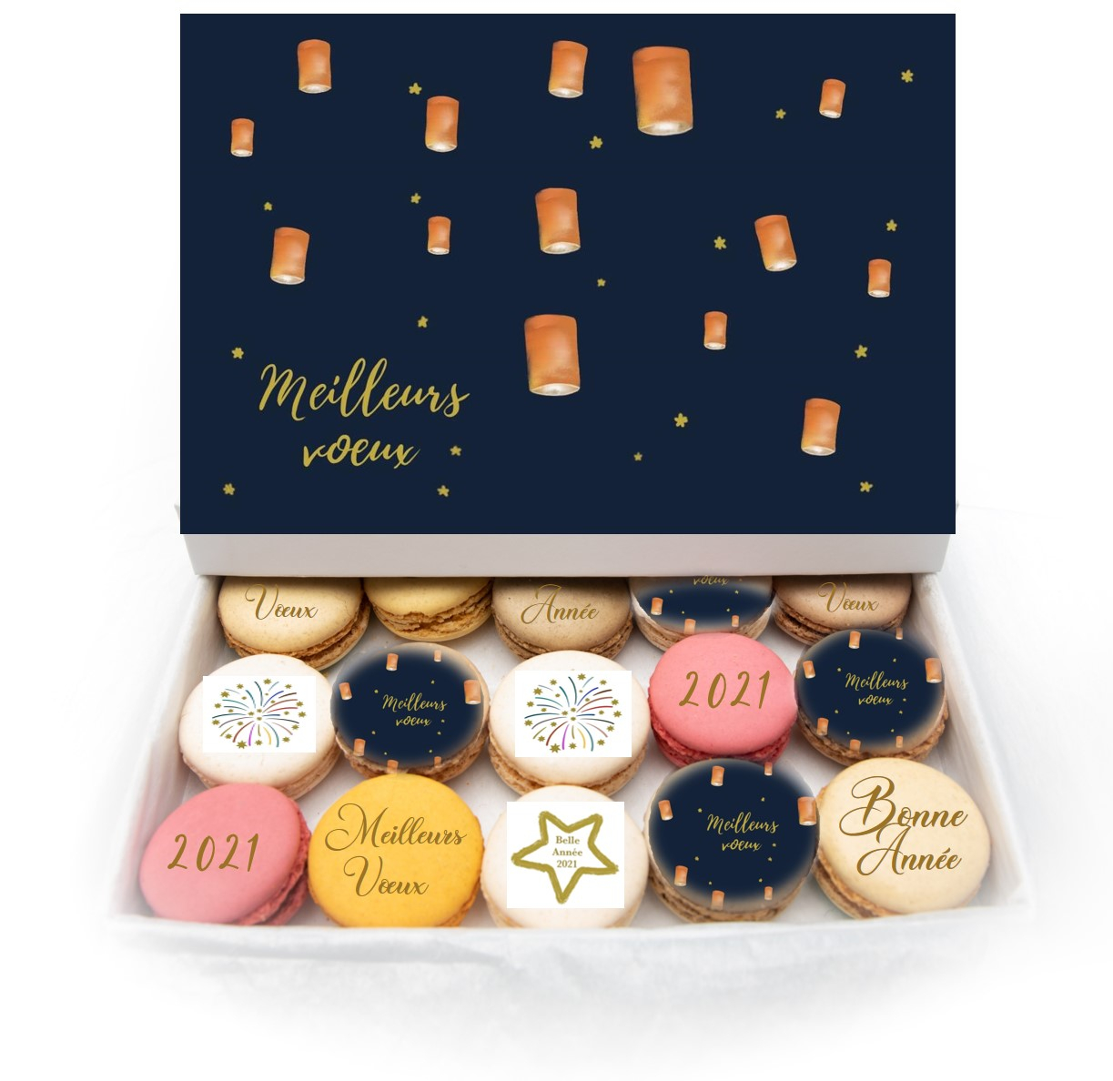 Pack Vœux x35 macarons avec 21 macarons personnalisés :