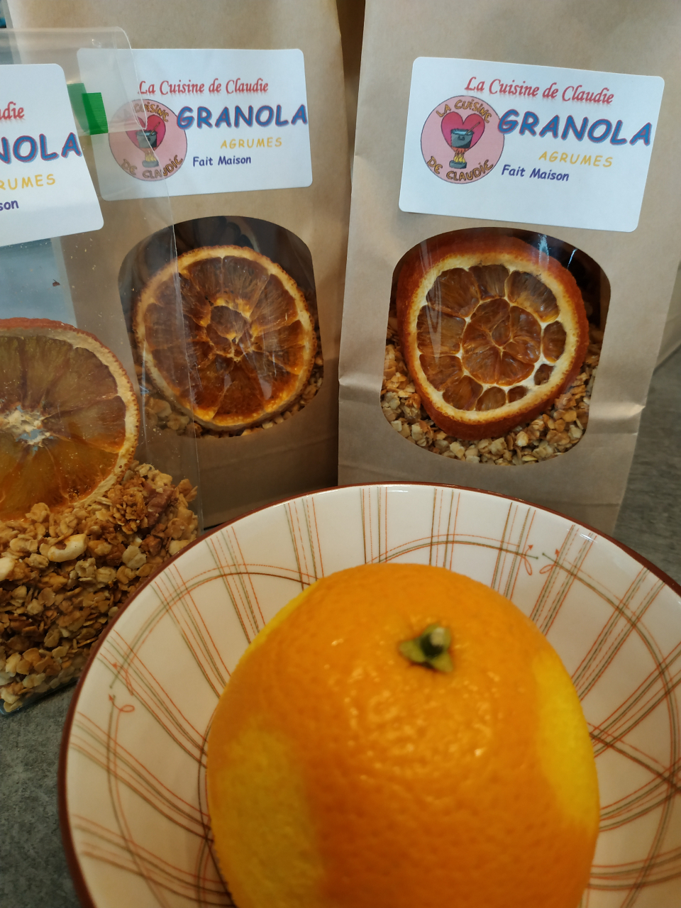 Ingrédients : Flocons d’avoine Bio, riz soufflé, noix de Pécan, jus de citrons jaune et vert, miel de notre production (10%), huile de pépins de raisin et zestes de d'orange et citron