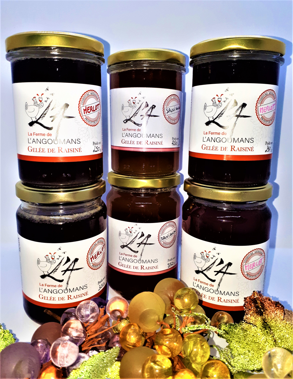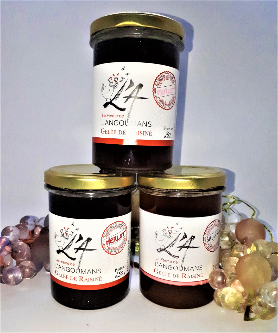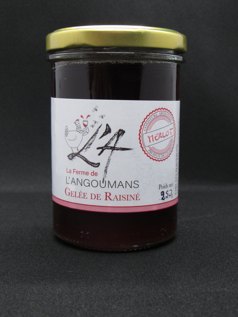 Nos gelées de raisiné sont confectionnées à partir du moût de raisin. Du sucre, de la pectine et du jus de citron sont les seuls ingrédients ajoutés pour vous garantir un savoir faire artisanal. La saveur rouge issue du moût de merlot les arômes de griottes et cassis sont mis en évidence.