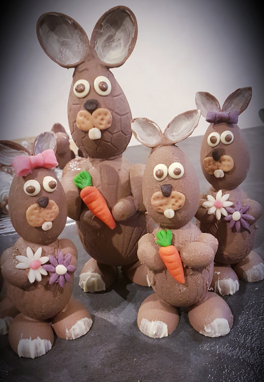 La Fabrique de Juju vous propose les lapins en montage oeufs avec des fleur en pâte d'amande.
