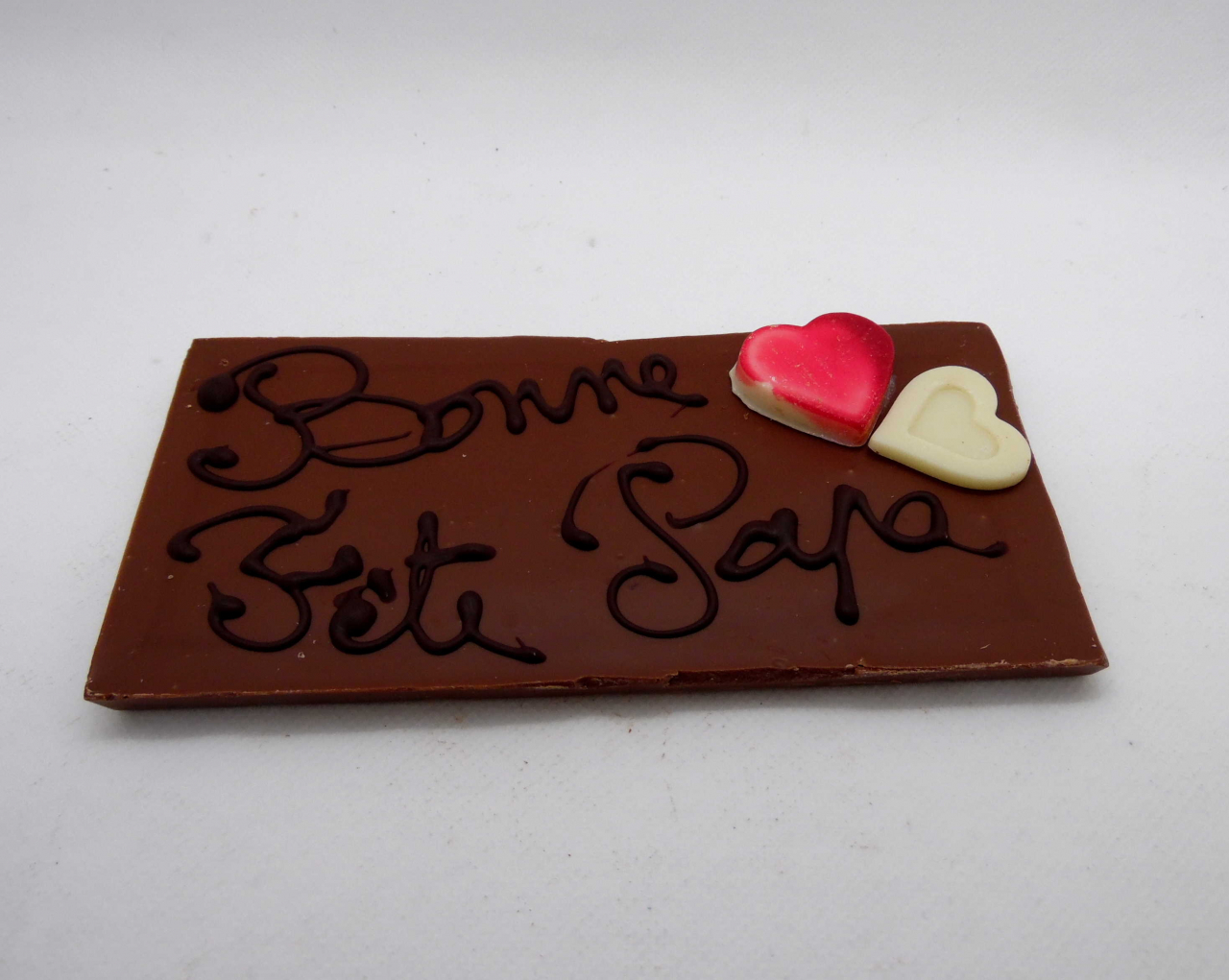Bientôt la fête des pères! Une belle occasion de souhaiter une bonne fête à tous les gourmands avec cette jolie tablette d'environ 100g de bon chocolat au lait 33% de cacao.