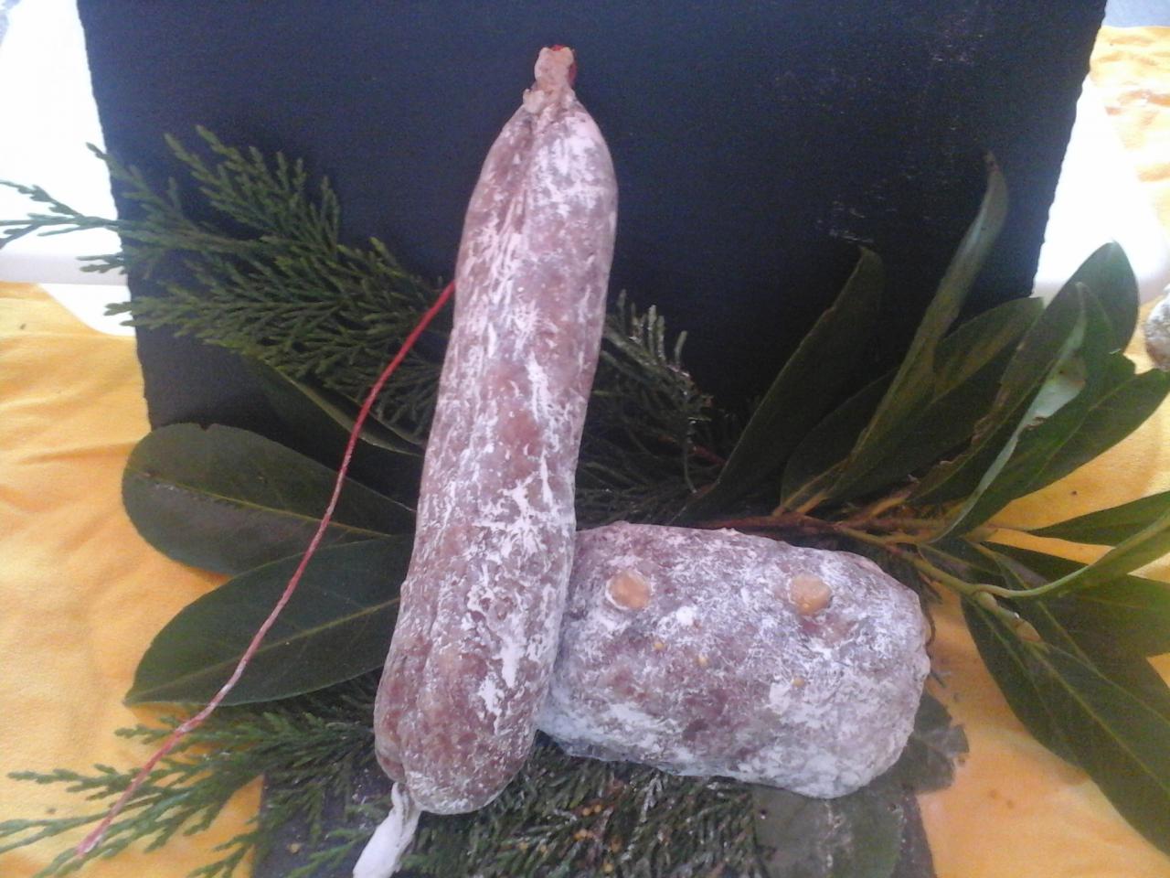 Boyau naturel (suivant de porc) pour le saucisson , et , sans Boyau pour le pavé.