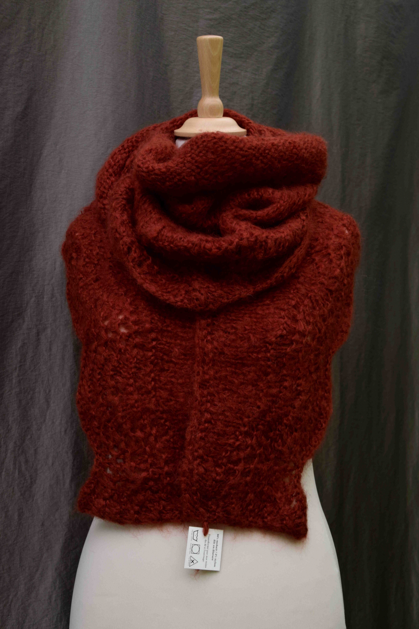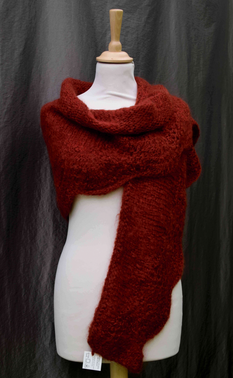 Châle tricoté par nos soins en laine mohair issue de nos chèvres angoras élevées sur nos terre certifiées bio.