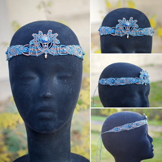 Ce diadème est tissé à la main. Il est composé de pierres de lapis lazuli et de sodalite.
