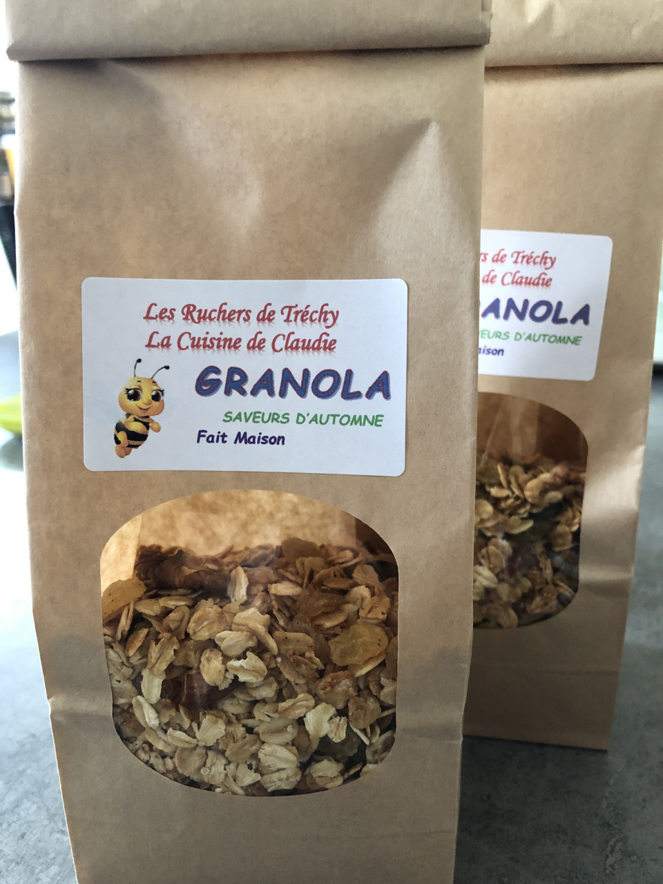 raisins secs, miel de notre production (10%), fleur de sel, huile de pépins de raisin torréfiés