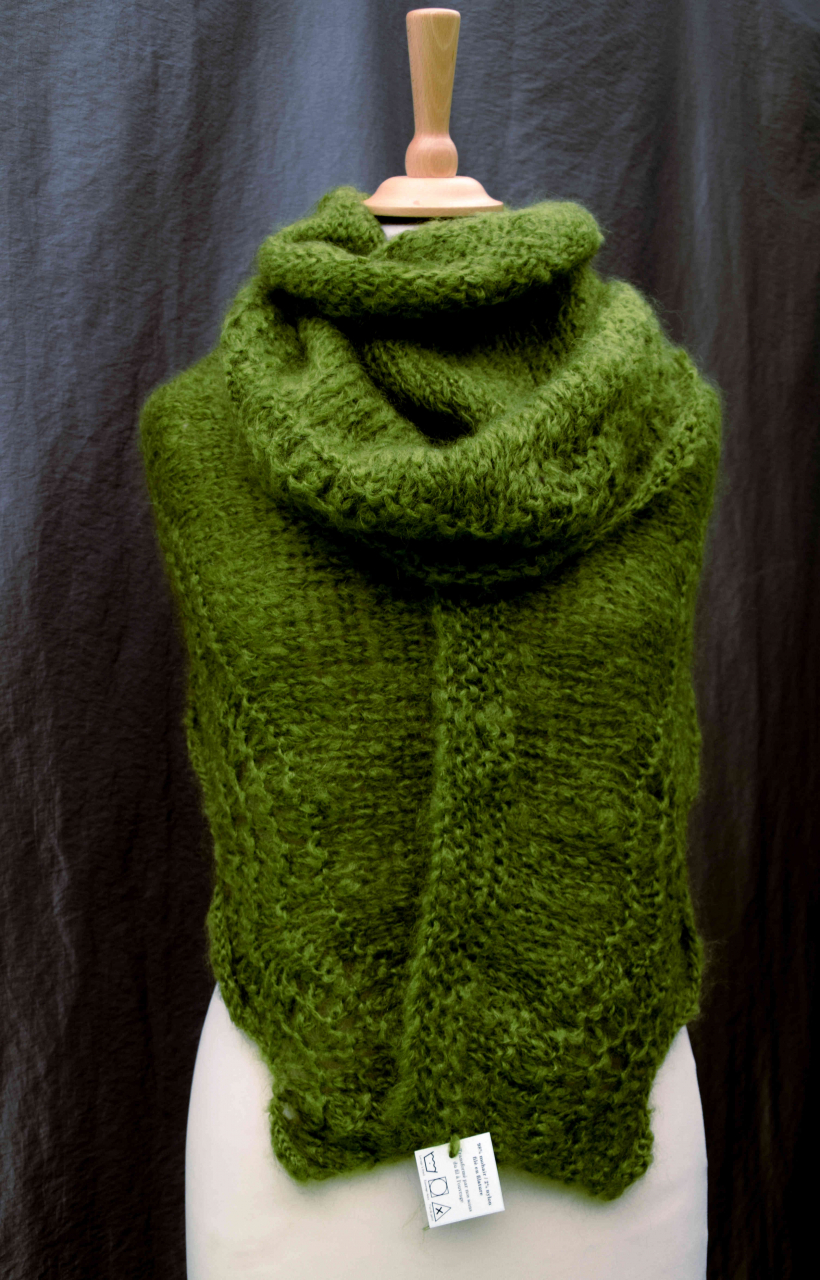 Châle tricoté par nos soins en laine mohair issue de nos chèvres angoras élevées sur nos terre certifiées bio.