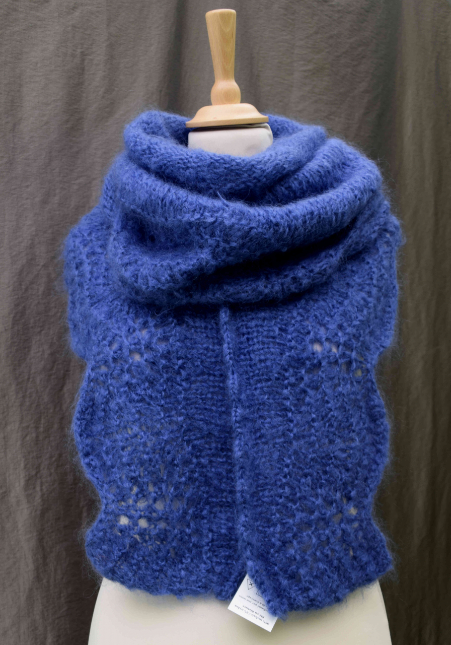 Châle tricoté par nos soins en laine mohair issue de nos chèvres angoras élevées sur nos terre certifiées bio.