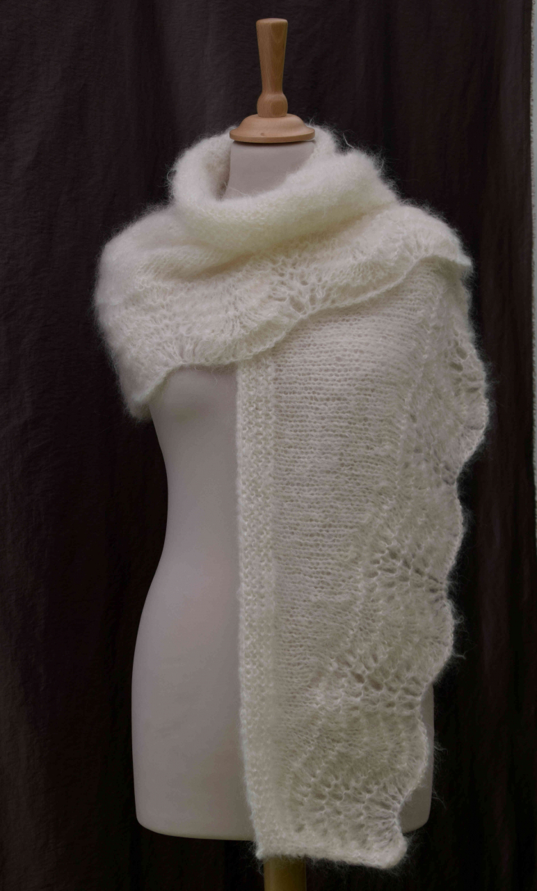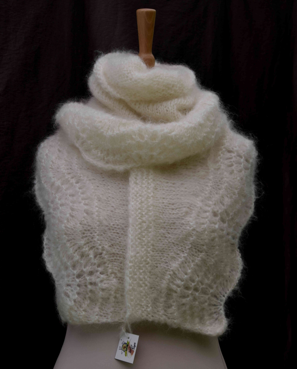 Châle tricoté par nos soins en laine mohair issue de nos chèvres angoras élevées sur nos terre certifiées bio.