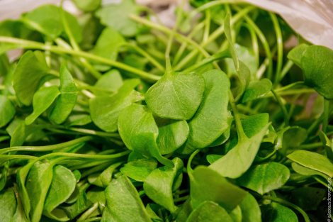 Le pourpier d'hiver est un légume-feuille avec de longues tiges très fines et de petites feuilles, qui font penser à de la mâche.