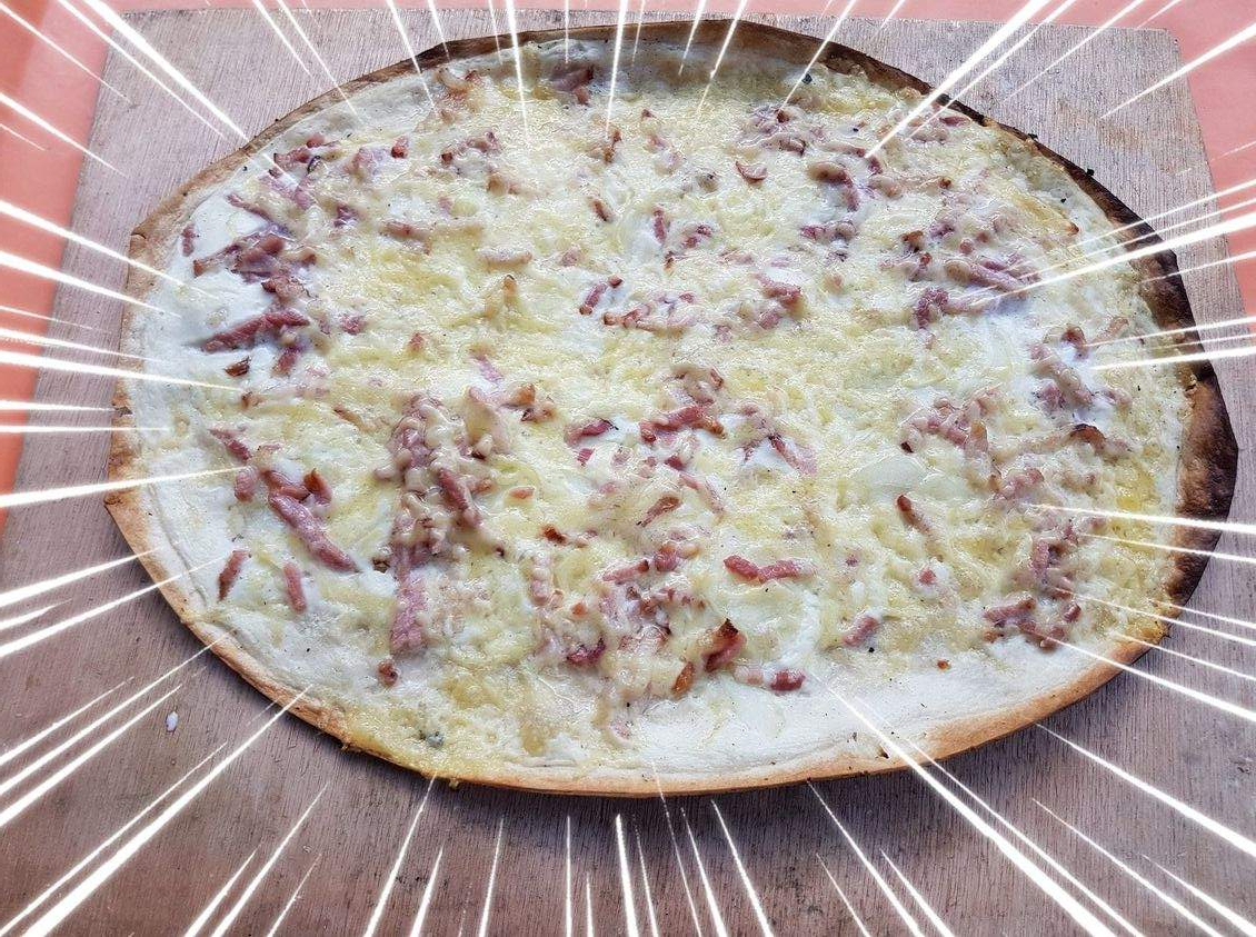 kit 5 tartes flambées fabrication artisanale comprenant 5 fonds, la crème, les oignons et les lardons