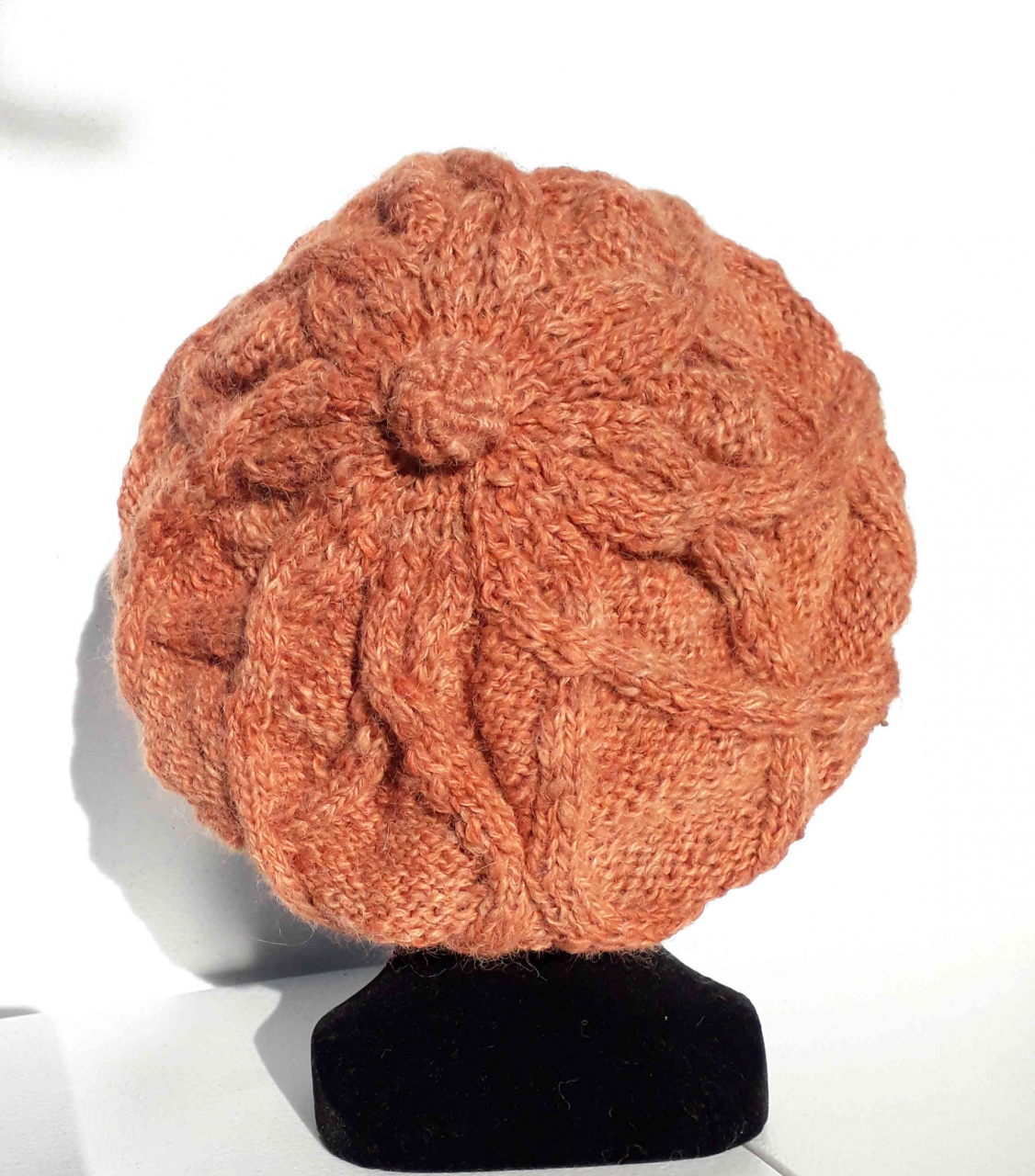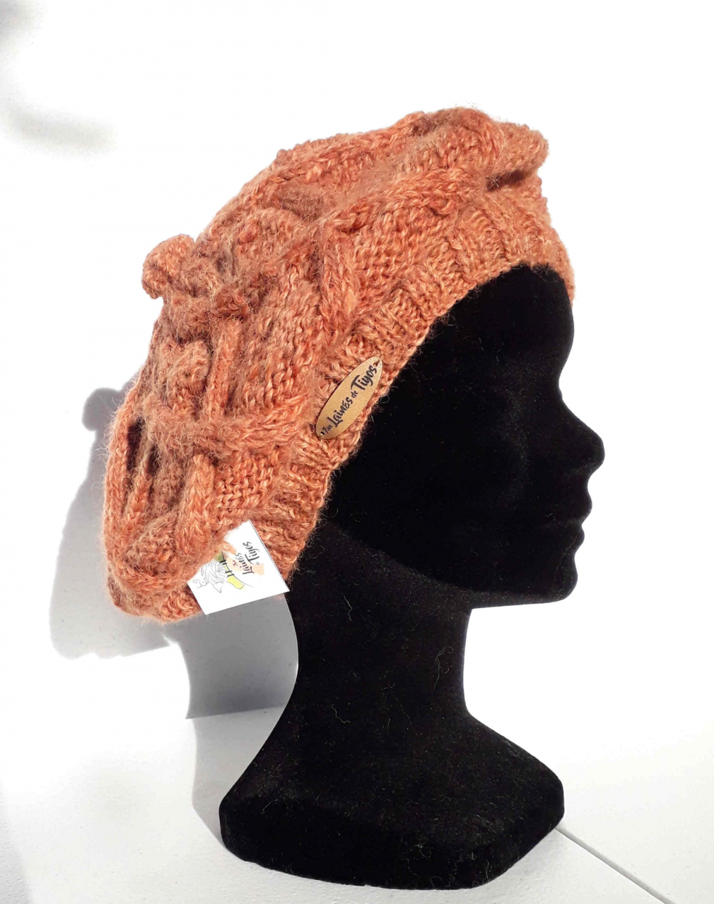 Béret tricoté en laine 100% alpaga filée sur nos rouets dans notre atelier du Lévezou, à Alrance.