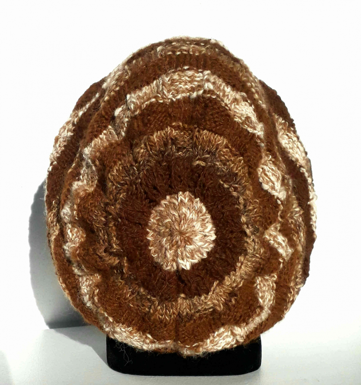 Bonnet slouchy (un peu ample) tricoté en laine 100% alpaga filée sur nos rouets dans notre atelier du Lévezou, à Alrance.