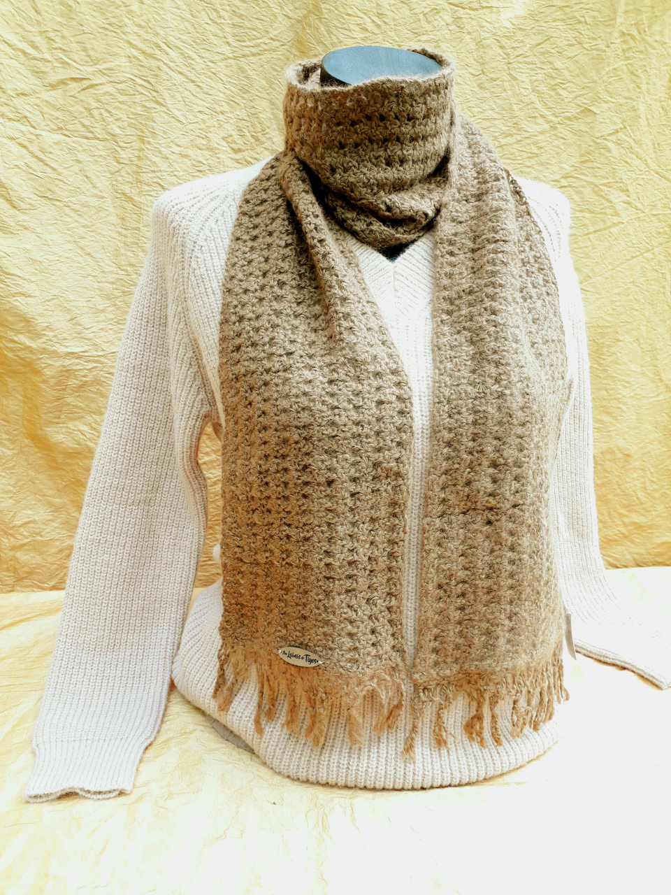 Écharpe fine crochetée en pure laine d'alpaga filée sur nos rouets dans notre atelier du Lévezou.