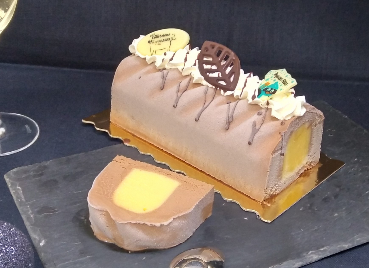 Barre glacée Chocolat et sorbet Mandarine. Nous pouvons personnaliser vos barres (ex : anniversaire ...).