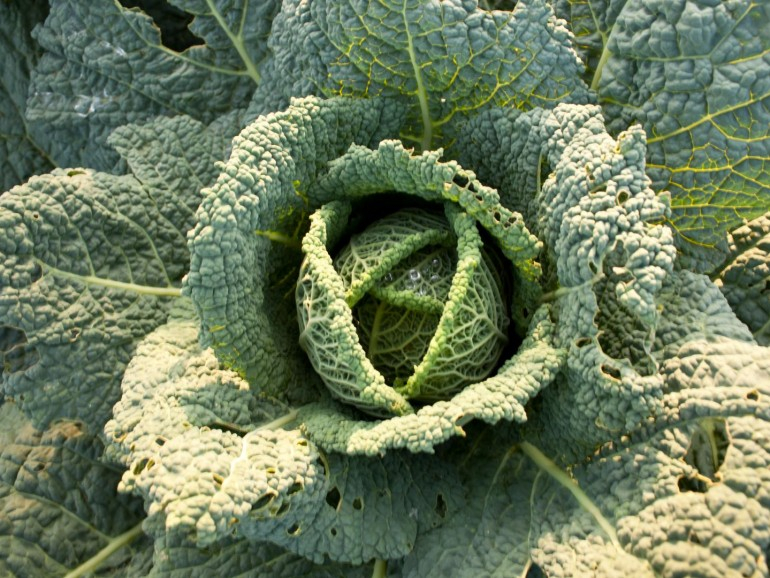 Le chou de Pontoise est une variété d'hiver rustique aux feuilles vertes légèrement violacées, cloquées et serrées.