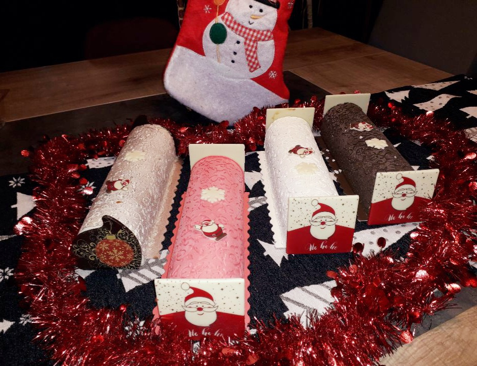 Les bûches sont fabriquées avec une base vanille et le deuxième parfum est placé sous forme d'insert.