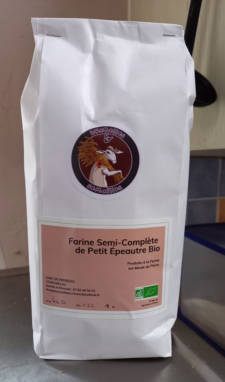 Semé et récolté puis moulu sur meule de pierre à la ferme et à Millau.