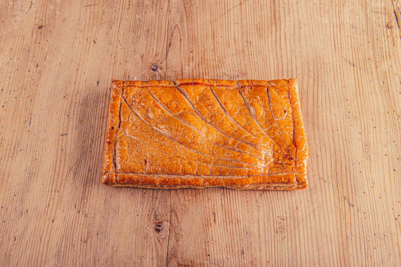 Galette faite maison, avec un beurre français garnie de compote et de morceaux de pommes avec une touche de vanille et de cannelle.