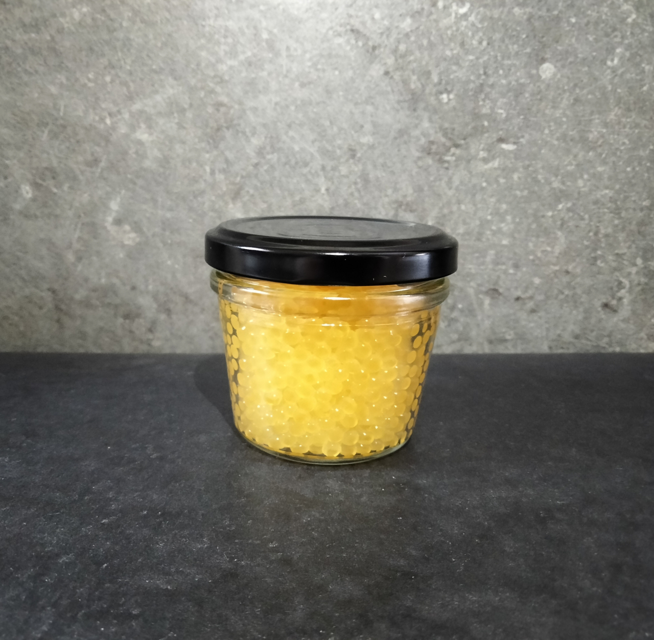 Il s'agit de l'œuf du poisson finement salé, conditionné en verrine et pasteurisé, il offre une DLC longue. Une couleur peut ordinaire, jaune or, digne de ce poisson fin et délicat. Une présentation au top en cette période de fin d'année. Le goût de ce produit est légèrement iodé, rond en bouche avec une note délicate de poisson. Il saura agréablement surprendre vos papilles !!