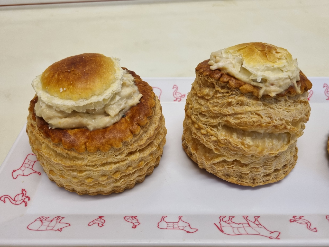 Ingrédients : Ingrédients : Pâte feuilletée (élaborée par un boulanger), Volaille, Champignons, Farine de blé (gluten), quenelles de volaille