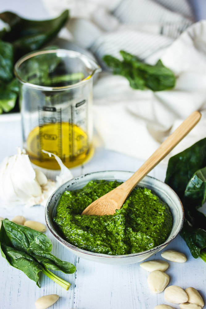 Ingrédients : 42 % ail des ours frais bio, 42% épinard sauvage frais ( chénopode bon Henri) , 10% huile olive bio, 5% parmesan bio, citron, sel rose Himalaya